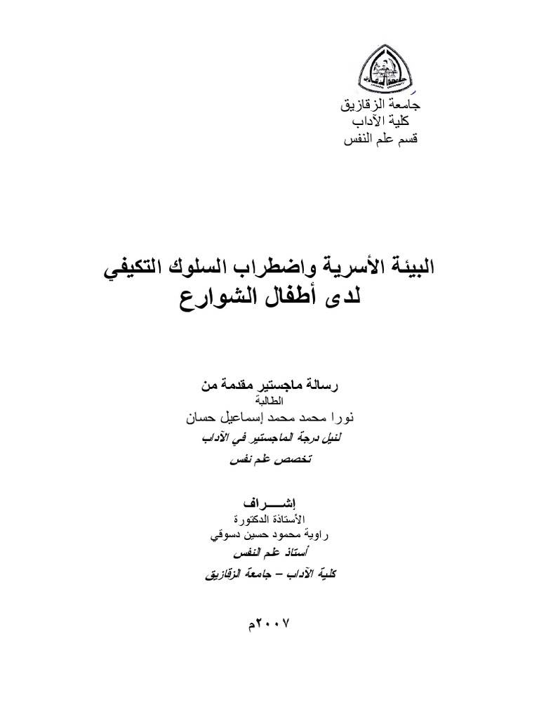 البيئة الأسرية واضطراب السلوك التكيفي لدى أطفال الشوارع