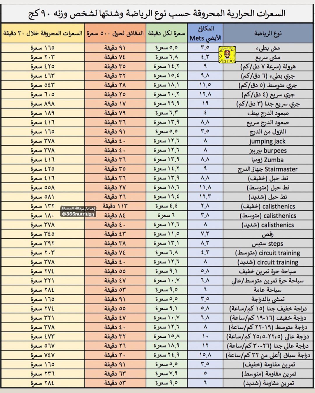 رياضة ولياقة On Twitter السعرات الحرارية المحروقة في انواع الرياضات