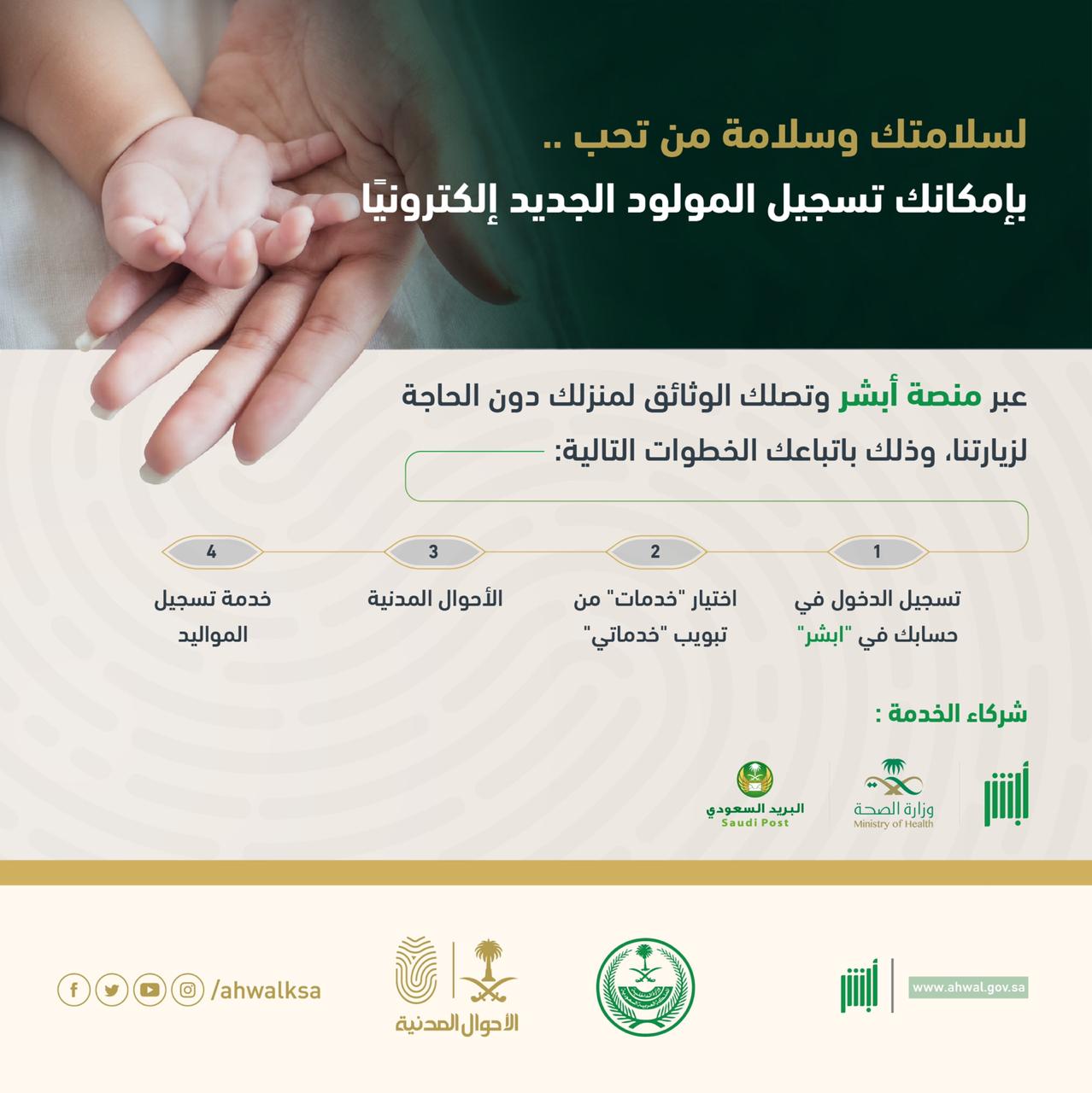 الأحوال المدنية On Twitter مع خدمة تسجيل المواليد في منصة أبشر يمكنك تسجيل المولود وطلب اصدار سجل الأسرة وشهادة الميلاد وإيصالهما عبر عنوانك الوطني من خلال البريد السعودي دون الحاجة لزيارتنا Https T Co Qktaxykhdu