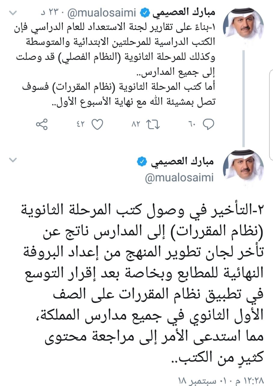 التعليم كتب الثانوية نظام المقررات تصل المدارس نهاية الأسبوع عسير